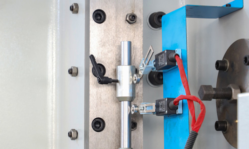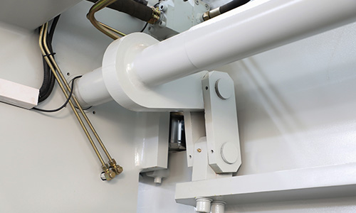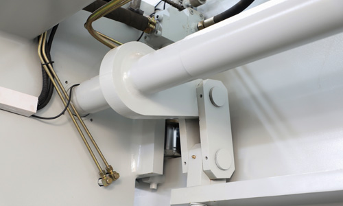 液壓上傳動滑塊同步機構采用扭軸強迫同步和機械擋塊,可選配國產和進口系統,工作臺可選撓度補償機構。